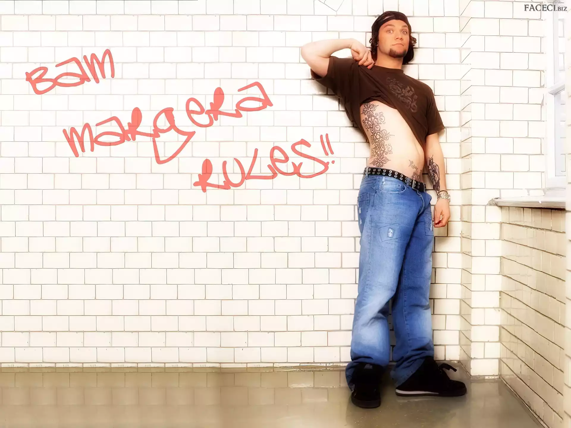 włosy, Bam Margera, ciemne zegarek, Bam Margera, deskorolka okulary, Bam Margera, twarze t-shirt, Bam Margera, brązowy okulary, Bam Margera, butelka kurtka, Bam Margera, rozpięta
